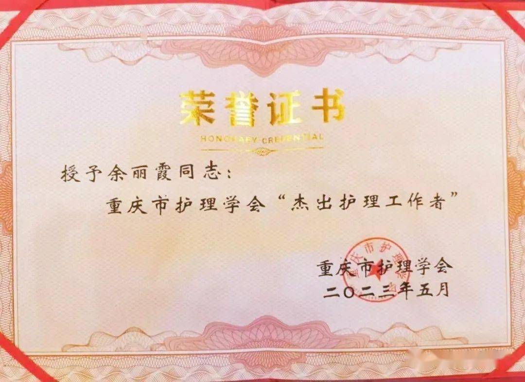 荣获重庆市护理学会2023年“杰出护理工作者”是对 余丽霞同志25年护理工作的充分肯定,也展现了人民医院护理工作队伍的优秀风采,必将激励全区护理工作者立足本职、锐意进取、开拓创新、奋发有为,为护理事业发展做出更大贡献。